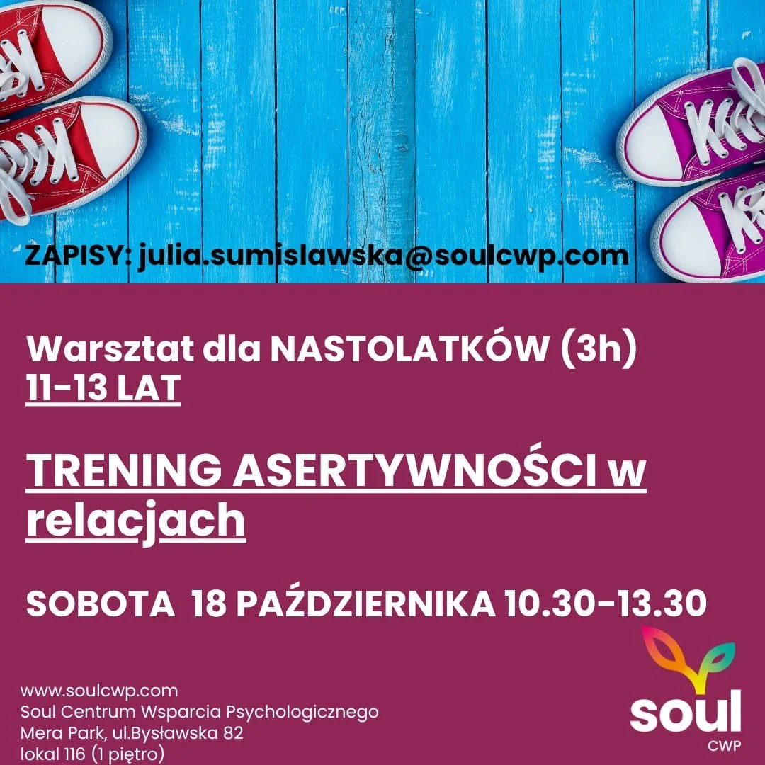 Zapraszamy dzieci w wieku 11-13 lat na sobotni warsztat Trening asertywności w relacjach.